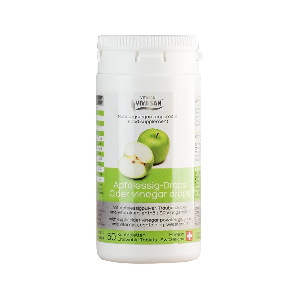 Ingredienti: zucchero d'uva, aceto di sidro di mele in polvere, polvere di mele, siero di latte lattico in polvere, miscela di vitamine (C, E, B1, B2, B6, B12, acido pantotenico, acido folico, biotina, niacina.