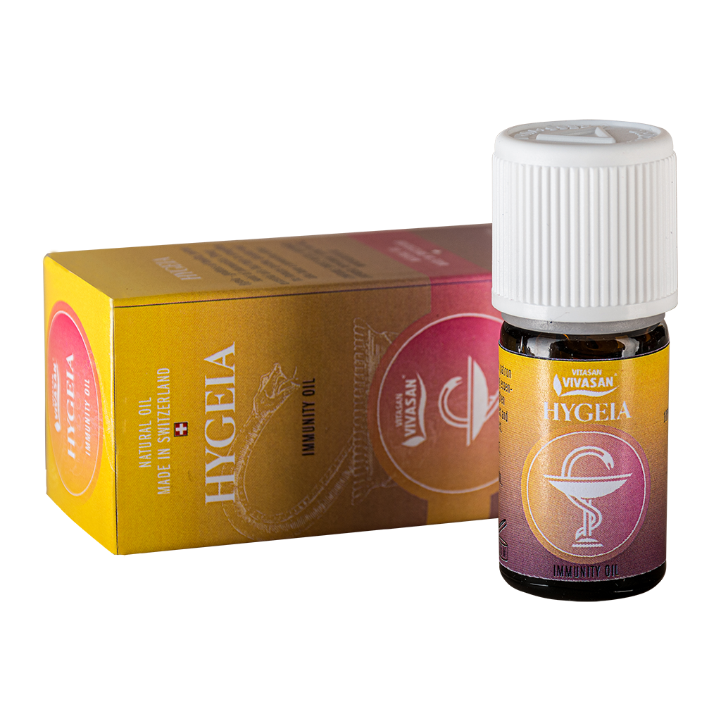 Hygieia è la dea della salute e la protettrice dei farmacisti. La nostra nuova composizione di oli HYGEIA è stata appositamente sviluppata per aumentare le difese immunitarie e per mantenere lo stato di buona salute. Combatte efficacemente i batteri e i virus. Contribuisce alla rapida convalescenza a seguito delle malattie.