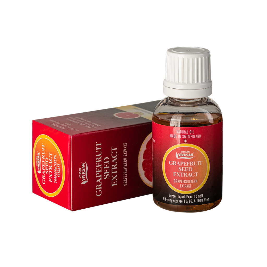 Estratto naturale standardizzato di semi di pompelmo (36/67) in glicerina vegetale. Attività antibatterica, antivirale, antiparassitaria, antimicotica, antibiotica.